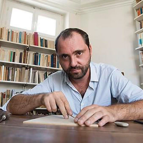 Né en 1979, Thomas Perino vit et travaille en région parisienne. Il est diplômé des Beaux-Arts de Paris en 2006 où il fréquente l’atelier de gravure. Dans ses œuvres, Thomas choisit de composer des images liées à la notion d’écriture et il entretient un rapport privilégié à la littérature. Les éléments graphiques comme l’opposition ligne /surface, droite/courbe, la rayure, le cercle constituent le vocabulaire de ses images. Chez lui, la notion de composition est essentielle avec un intérêt tout particulier pour «l’architecture de l’image » avec ses vides, ses pleins et ses plans dans l’espace. Il choisit la gravure sur bois pour son exigence de composition, sa nécessité de fabriquer la matrice en relief et à l’envers.