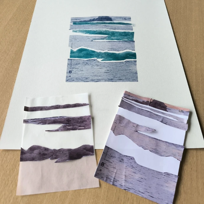 Suite aux différents passages en machine, le petit décalage présent sur le premier tirage va se répéter sur les impressions suivantes. Il ne sera jamais le même de feuille en feuille. C’est tout le charme de la Riso : des impressions à la fois multiples et uniques !